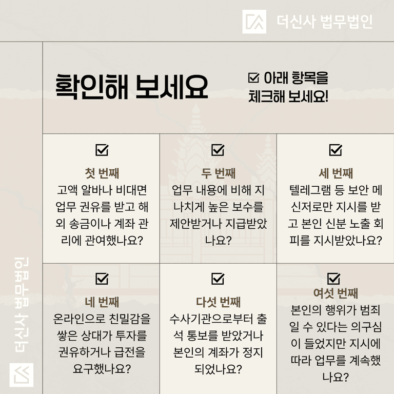 최근 동남아시아 지역을 기점으로 한 신종 금융 사기가 기승을 부리면서, 자신도 모르는 사이에 범죄의 한복판에 서게 되는 분들이 부쩍 늘고 있습니다.
