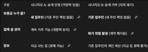 핵심: "나는 새 집주인과 계약하지 않겠다. 기존 집주인이 내 보증금을 돌려줘라!"라고 선언하는 것입니다.