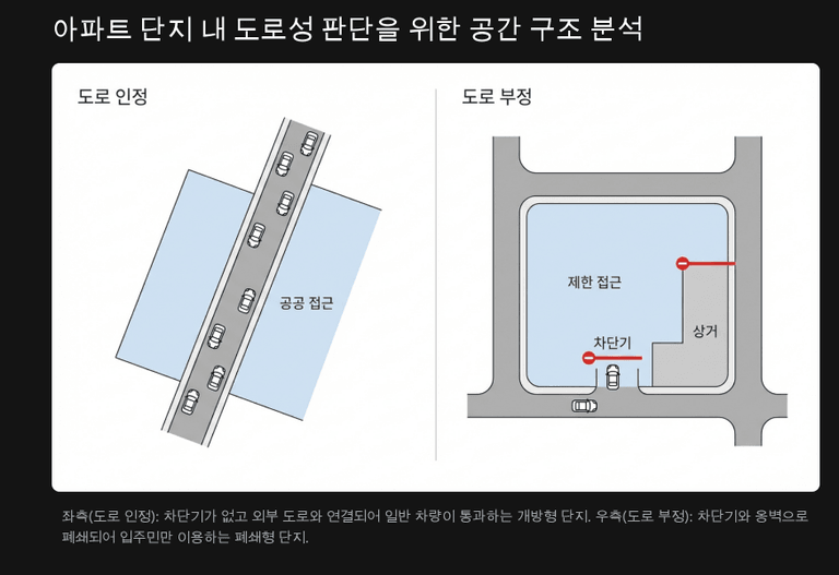 💡요약: 차단기가 내려져 있고 외부인 출입을 깐깐하게 막는다면? 그곳은 법적으로 '도로가 아닌 사유지'입니다.