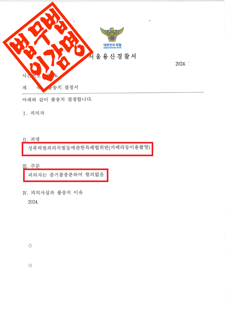 서울용산경찰서는 이 사건에 대해 다음과 같은 사유로 불송치 결정을 하였습니다.