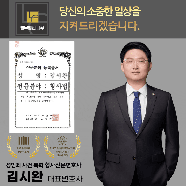 안녕하세요, 형사전문변호사 성범죄 전문변호사 법무법인 나우 김시완 대표변호사입니다.