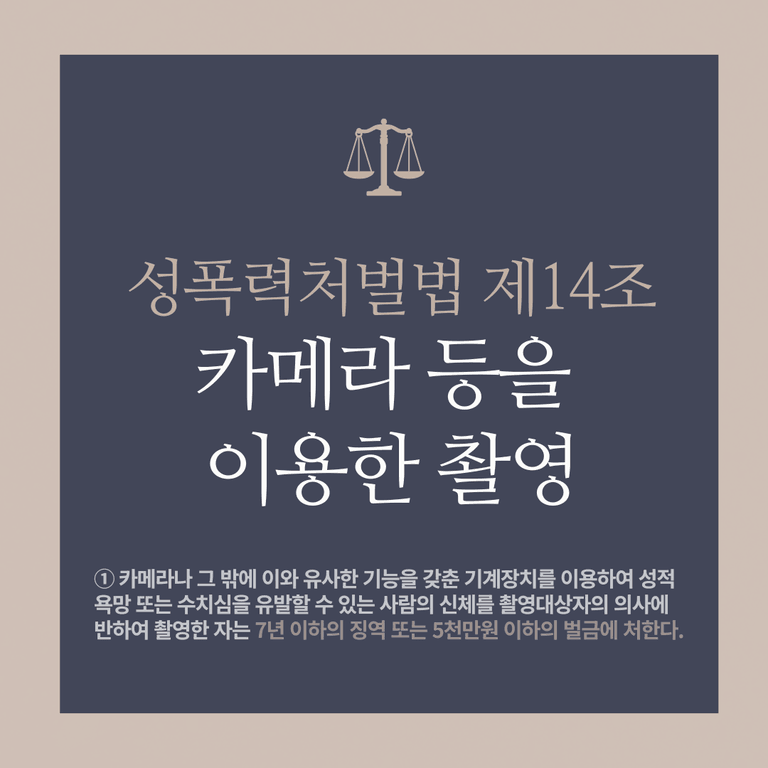 ① 카메라나 그 밖에 이와 유사한 기능을 갖춘 기계장치를 이용하여 성적 욕망 또는 수치심을 유발할 수 있는 사람의 신체를 촬영대상자의 의사에 반하여 촬영한 자는 7년 이하의 징역 또는 5천만원 이하의 벌금에 처한다.