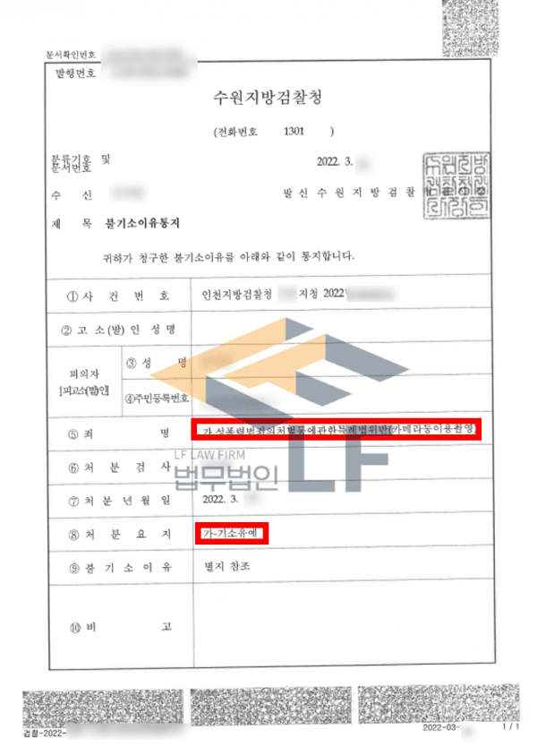 해당 사례의 의뢰인처럼 검찰로부터 기소유예 처분을 받으며 사건을 무마할 수도 있으며, 구약식으로 벌금 명령을 받거나 정식 기소돼 재판을 받을 가능성도 존재할 수 있습니다.