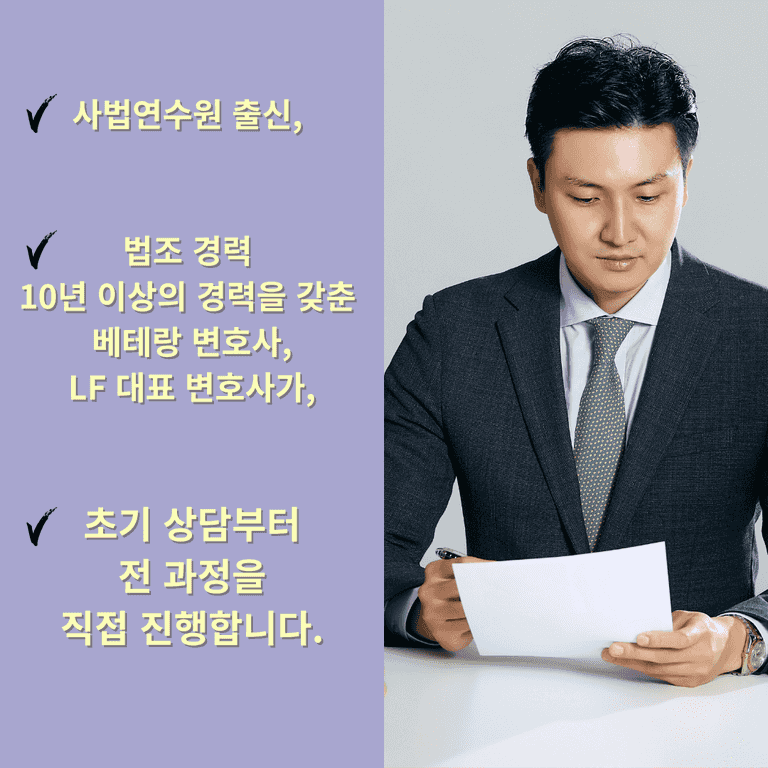 부닥친 사건의 결과가 앞으로의 삶에 많은 영향을 미칠 수 있는 상황이라면, 각개 의뢰인의 입장과 상황에서 성공적으로 사건을 해결해 내었던 사례를 다수 보유하고 있는 베테랑 변호인의 도움을 받는 것이 현명한 선택이 될 수 있을 것입니다.