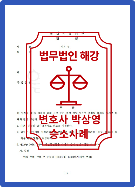 법무법인 해강에서는 법리적 검토와 준비서면 등을 통하여 의뢰인의 맞는 법률 조력을 하고자 노력하였고 [양육비 사전처분]에 성공 하였습니다.