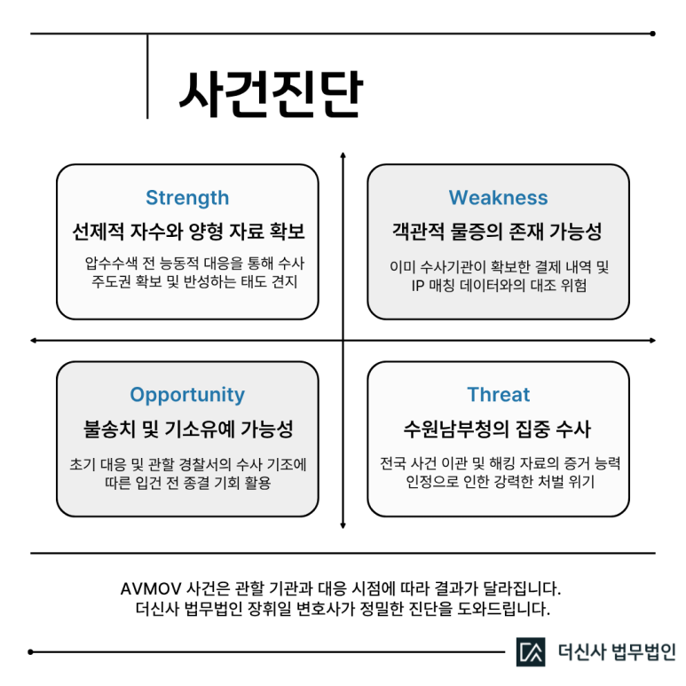 이는 무엇을 뜻할까요? 수원남부청은 이미 해킹 유출본 등을 토대로 어떤 ID가 어떤 IP를 사용해 무엇을 결제하고 시청했는지에 대한 매칭 리스트를 완성해 두었다는 것입니다. 본인이 사용한 계정 정보만 확인되면 혐의 입증은 그들에게 식은 죽 먹기인 셈입니다. 따라서 본인의 사건이 이미 본청 관할로 배정되었다면, 무모한 부인보다는 자수를 통해 선처를 구하는 것이 불송치에 준하는 유리한 결과를 끌어내는 전략일 수 있습니다.