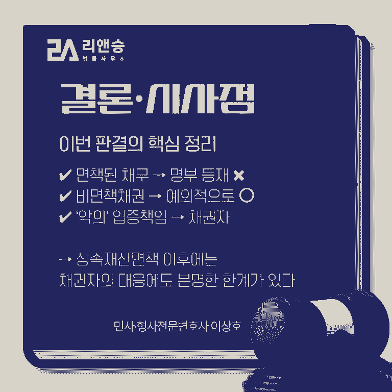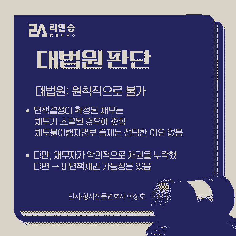 원칙적으로 채무불이행자명부 등재 불가✅ 예외는 비면책채권에 해당하는 경우뿐