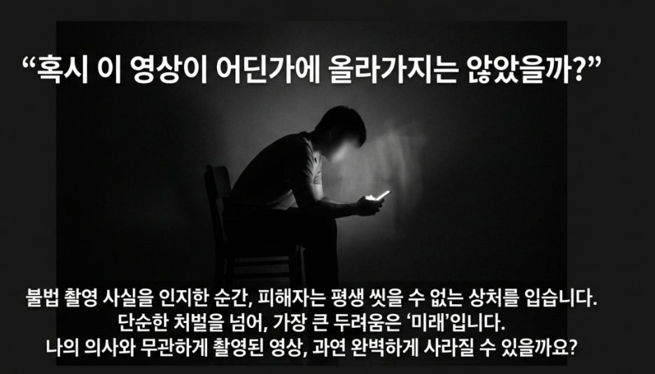 최근 디지털 성범죄, 그중에서도 '불법 촬영'은 피해자에게 평생 씻을 수 없는 상처와 유포에 대한 극심한 공포를 남깁니다. 피해 사실을 인지한 순간, 가장 먼저 드는 생각은 "혹시 이 영상이 어딘가에 올라가지는 않았을까?" 하는 두려움일 것입니다.