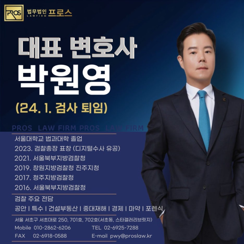 안녕하세요. 검사 출신, 형사전문 박원영 변호사입니다.