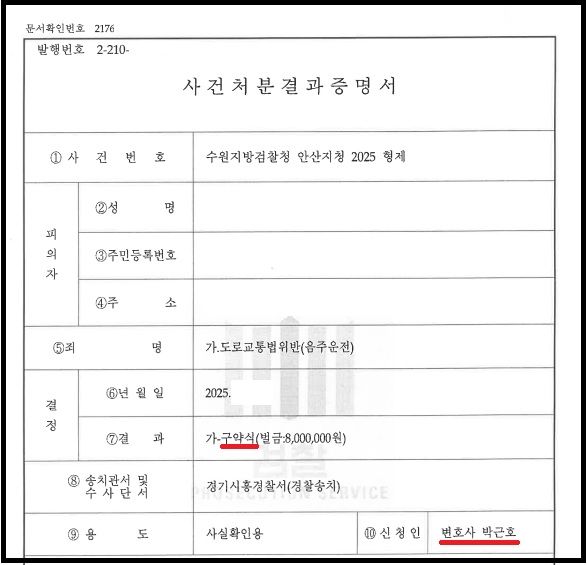 검찰에서는 제가 제출한 양형 의견서를 전면적으로 받아들이시어, 음주운전 2진 0.161% 현장이탈 사안임에도 불구하고 구약식 처분으로 사건을 종결하여 주셨습니다.