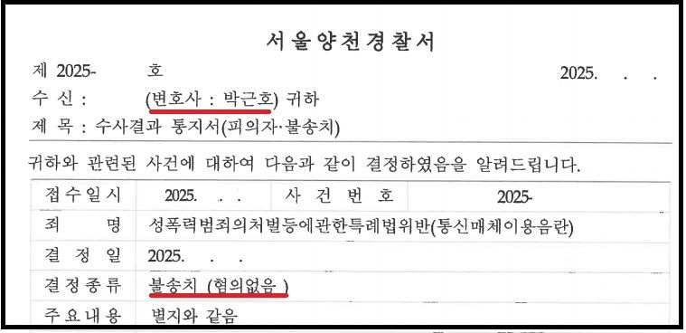 경찰에서는 사건 초기 통매음 혐의를 인정하겠다는 입장을 취하셨으나, 제가 제출한 의견서를 살펴보신 다음에는 사건에 대하여 전면 재검토를 진행하여 주셨습니다.