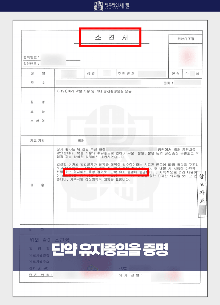 그중 하나로는 바로 전문 의료기관을 통하여 '오랜 기간 단약했고 앞으로도 하지 않겠다'는 다짐을 결과로서 보여주는 것입니다.