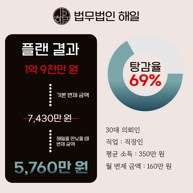 총채무 1억 8천5백만 원 중 5,760만 원 변제 = 변제율 31%