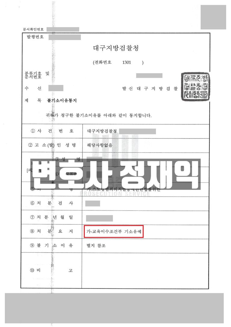 담당 검사는 제가 제출한 자료와 변론을 모두 받아들여 K씨를 기소하지 않고 교육이수조건부 기소유예 결정을 내렸습니다. 만약 변호사 없이 대응했다면, 사건에 대한 효과적인 대응방법을 모른 채 허둥대다가 그대로 법정에서 유죄 판결을 받고 전과자가 될 수도 있었을 것입니다. 하지만 치밀한 자료 수집과 변론 전략, 그리고 K씨의 상황을 담당 검사에게 효과적으로 전달한 결과, 기쁜 소식을 의뢰인과 함께 나눌 수 있었습니다.