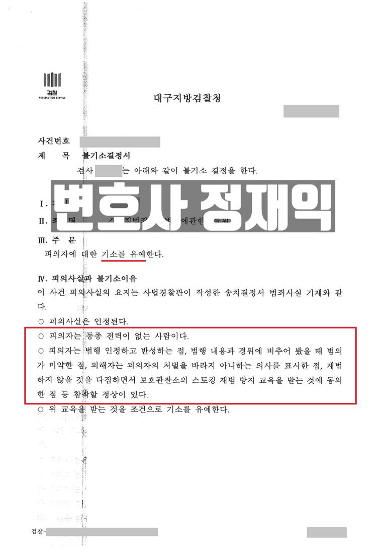 ![[대구스토킹변호사] 스토킹처벌법위반 혐의, 기소유예 처분](/_next/image?url=https%3A%2F%2Fd2ai3ajp99ywjy.cloudfront.net%2Fuploads%2Ftitleimage%2Foriginal%2F5c66536589f37c09d0095d63-original.jpg&w=3840&q=75)