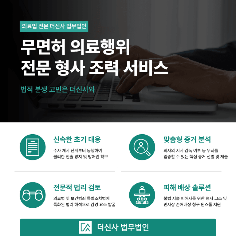 무면허 의료 시술과 관련된 법적 분쟁으로 어려움을 겪고 계시다면, 주저하지 말고 더신사 법무법인을 찾아주시길 바랍니다.