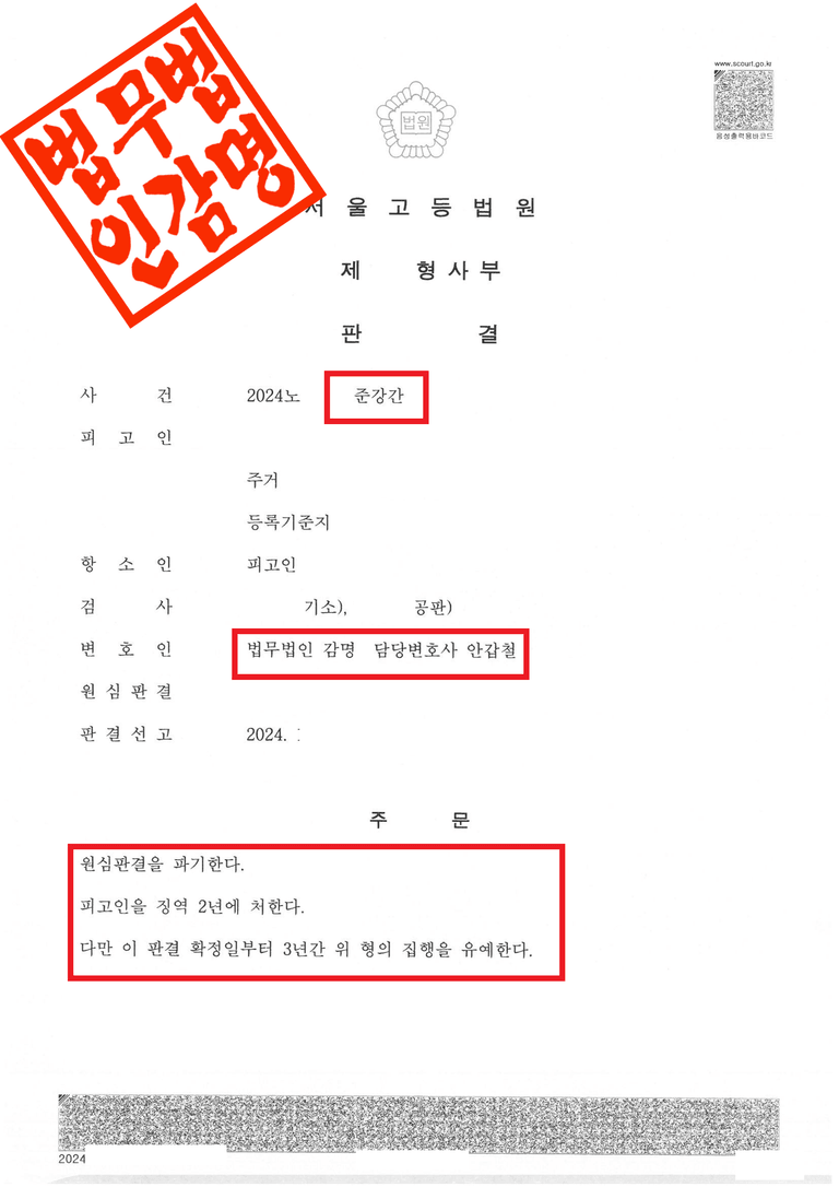※ 위 성공사례는 법무법인 감명에서 성공적으로 수행한 실제 사례를 기반으로 작성된 것으로, 의뢰인의 개인정보보호를 위해 일부 각색되었음을 알려드립니다.
