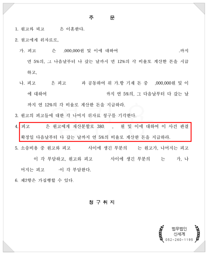 최종 결과: 재산분할 3억 8,000만원 + 상간녀 위자료 승소
