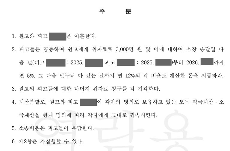배우자와 상간녀가 공동으로 위자료 3,000만 원을 지급할 의무가 있다고 판단했습니다.
