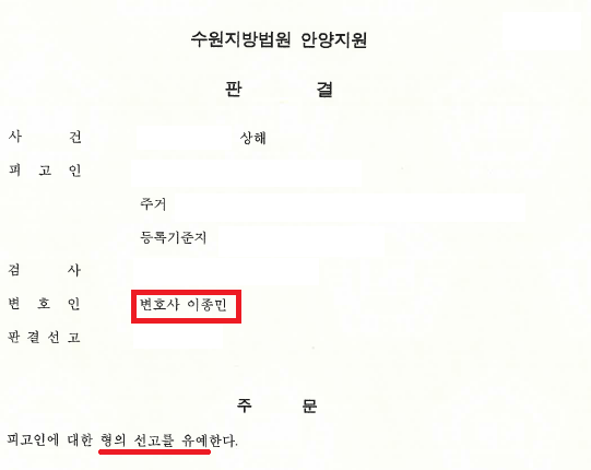 이와 같은 변호인의 노력에 따라, 의뢰인은 선고유예의 처분을 받고 사건을 마무리 지을 수 있었습니다.