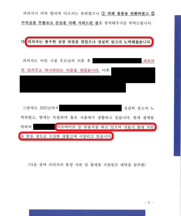 - 따라서 청년의 앞길이 막히지 않도록 기소유예나 즉결심판 회부와 같은 관대한 처분을 간곡히 호소드림