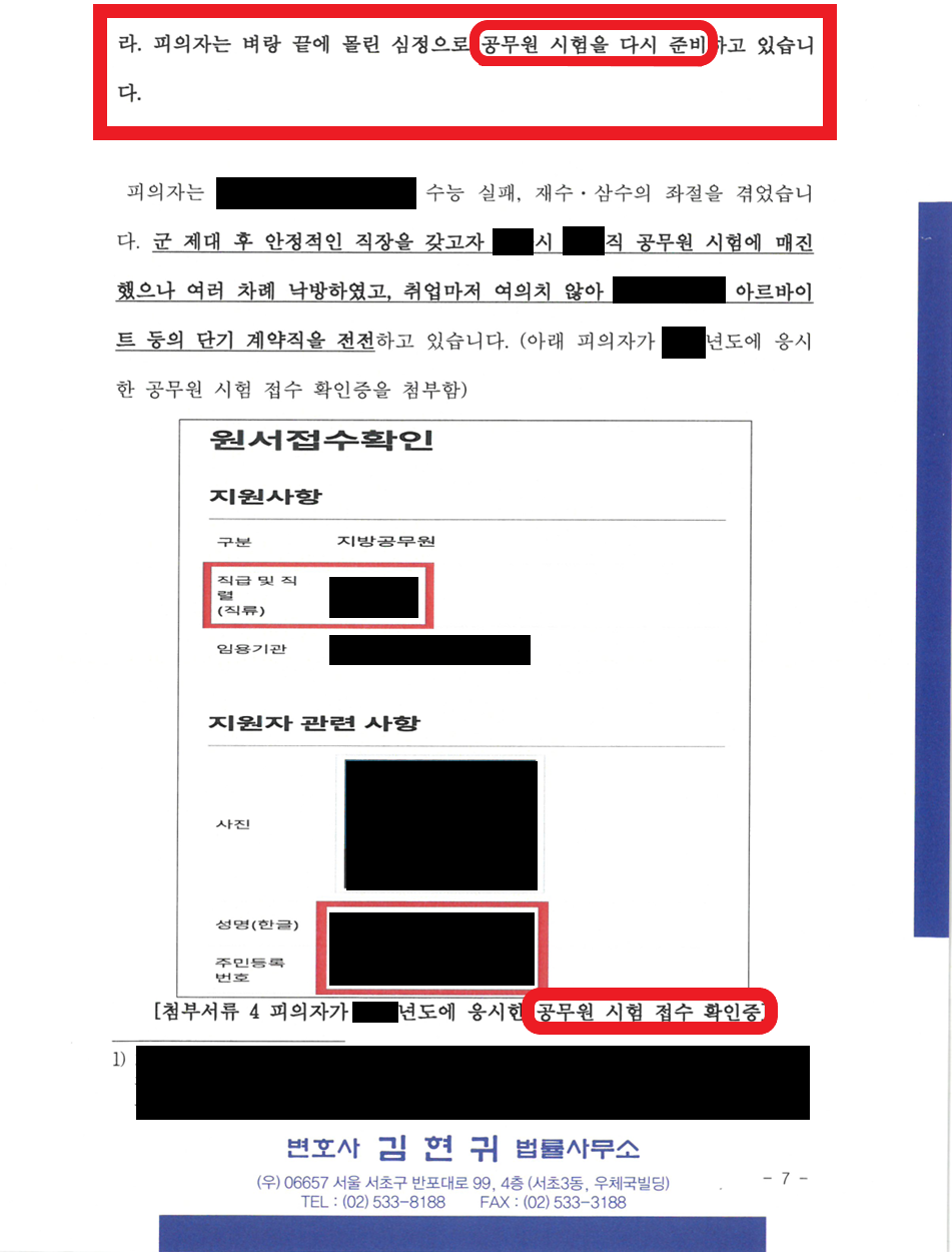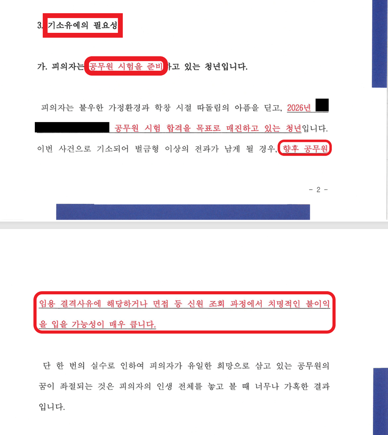 - 이번 사건으로 벌금형 이상의 전과가 남게 된다면, 향후 신원 조회나 면접 과정에서 치명적인 불이익을 받아 공무원의 꿈이 좌절될 수 있음