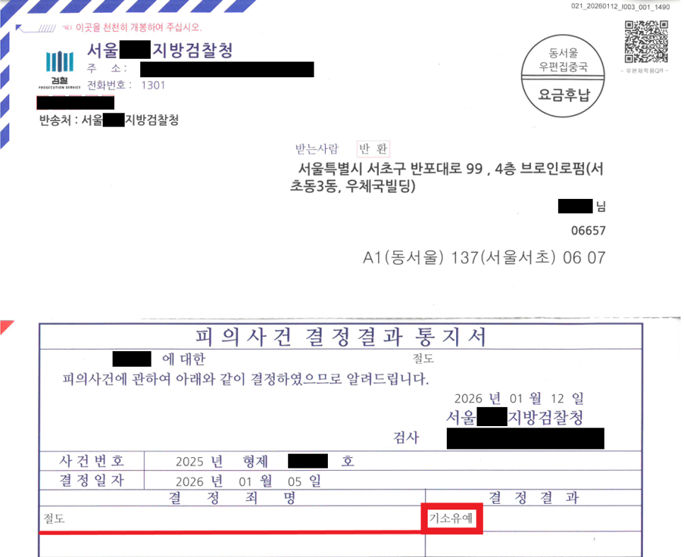 3. 법적 조력 결과 - '기소유예 처분!'