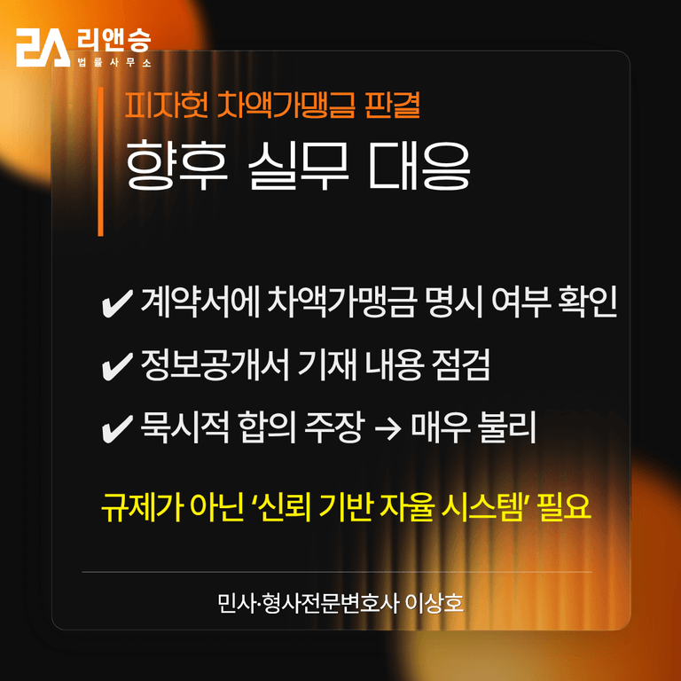 ✔ 프랜차이즈 계약에서 명시·투명성의 중요성 재확인