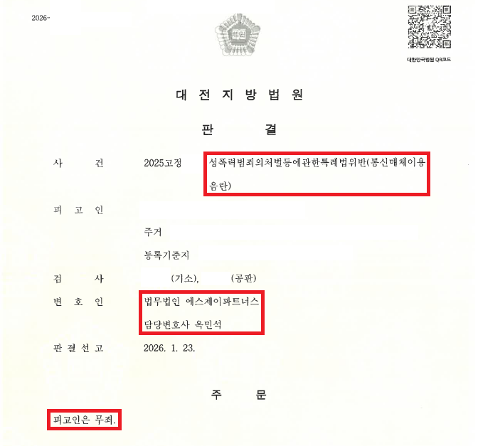 이러한 저의 조력을 바탕으로 A씨는 형사재판은 무죄율이 약 1%도 채 되지 않음에도 불구하고 무죄를 선고받음으로써 억울하게 성범죄자가 될 위기에서 벗어날 수 있었습니다.