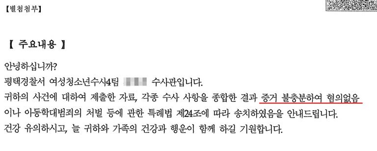 수사기관은 당시 상황에 대한 다수 교사의 사실확인서, 학생들의 진술, 객관적 자료를 종합하여 판단한 결과,