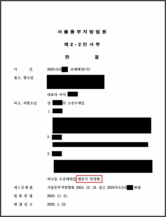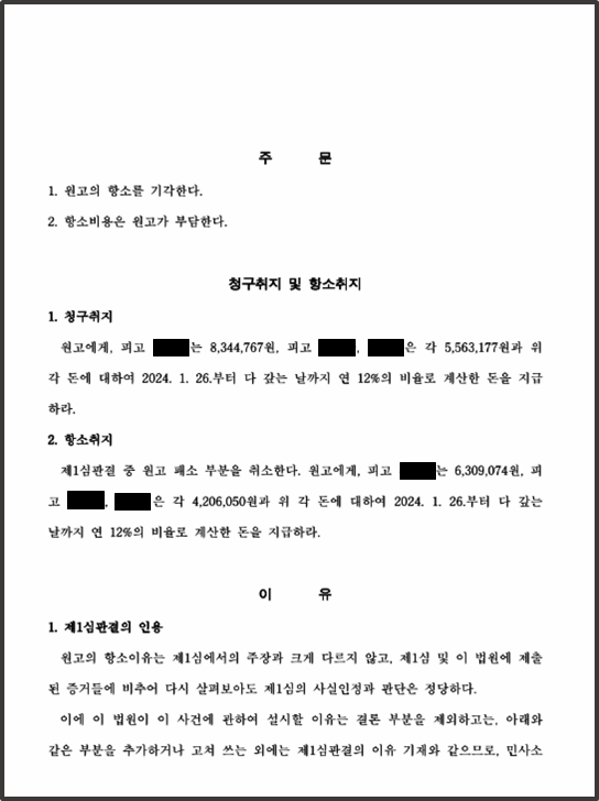 임차인은 1심 소송 이후에 항소까지 제기하였으나, 결국 항소기각으로 의뢰인이 승소하실 수 있도록 도왔습니다.