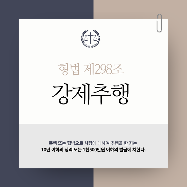 폭행 또는 협박으로 사람에 대하여 추행을 한 자는 10년 이하의 징역 또는 1천500만원 이하의 벌금에 처한다.