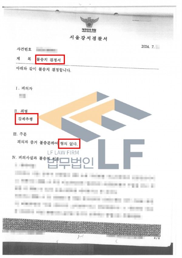 의뢰인은 경찰로부터 경찰불송치 처분을 받으며 사건을 빠르게 종결할 수 있었습니다.
