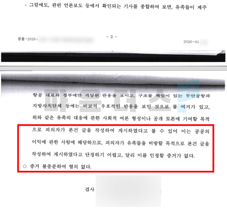 지금부터 무안 제주항공 참사와 관련하여 의견표명의 목적으로 게시글을 작성해 정통망법상 명예훼손 혐의를 받았으나 법적 대응을 통해 혐의없음 처분을 이끌어낸 실제 사례를 설명해 드리겠습니다.
