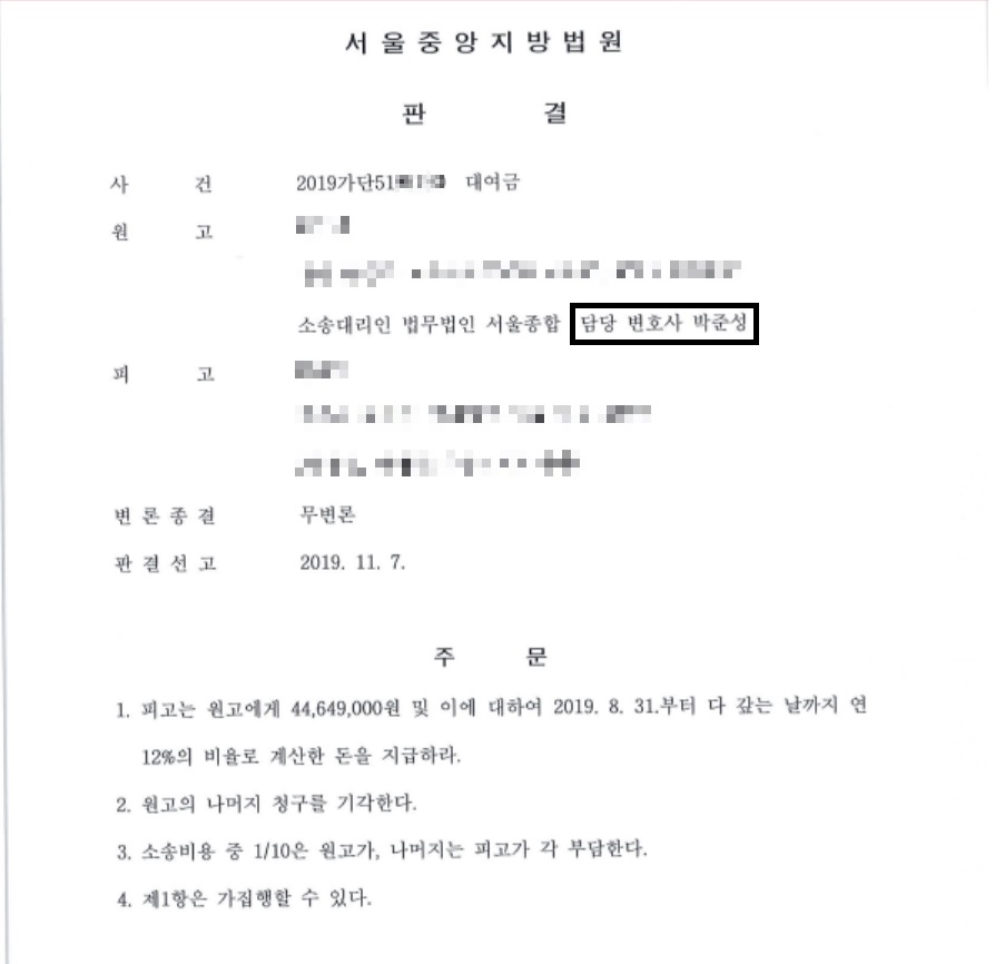 그리하여 의뢰인님은 오랫동안 마음고생을 하던 채권추심에 완벽하게 성공하여