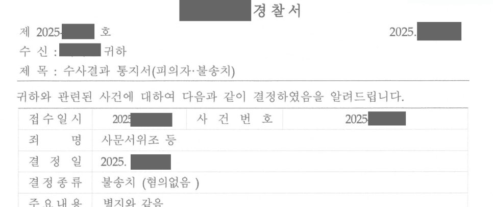 그러나 수사 결과, 경찰은 모든 혐의에 대해 불송치(혐의없음) 결정을 내렸고,
