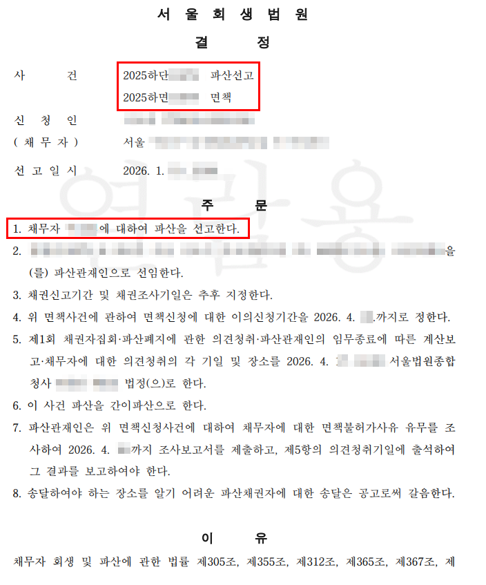 이 사건의 경우, (1) 채무자가 나이가 젊은 편이어서, 개인파산을 신청할 때 어째서 '개인회생'이 아니라 '개인파산'을 신청한 것인지 소명해야 했고, (2) 면책 불허가 사유 관련, 낭비성 소비행위가 없다는 점을 소명해야 한다는 어려운 점이 있었다. 우리 사무실에서는 이 지점에 주의하면서 파산 신청을 수행했다.