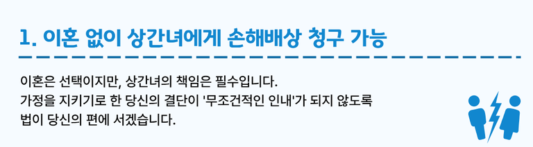 즉, 이혼 여부와 상관없이 정당한 손해배상을 청구할 수 있는 것입니다.
