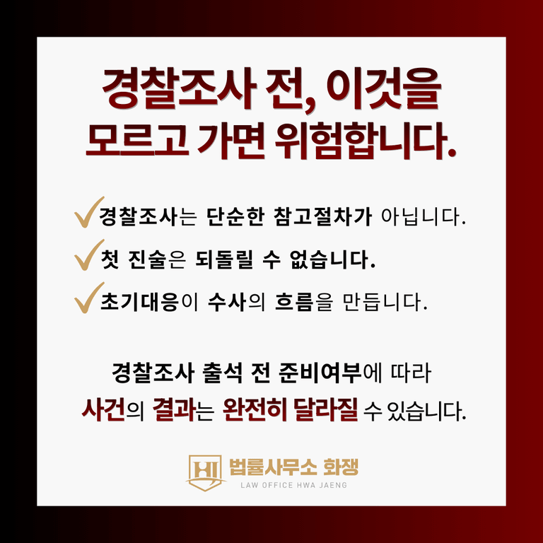 조사 전에 어떤 말을 하느냐에 따라 사건의 방향은 완전히 달라질 수 있습니다.