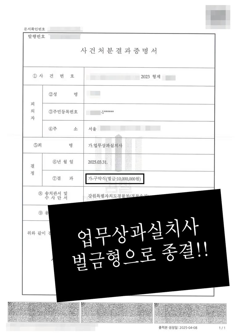 벌금형 처분을 받아냈습니다.