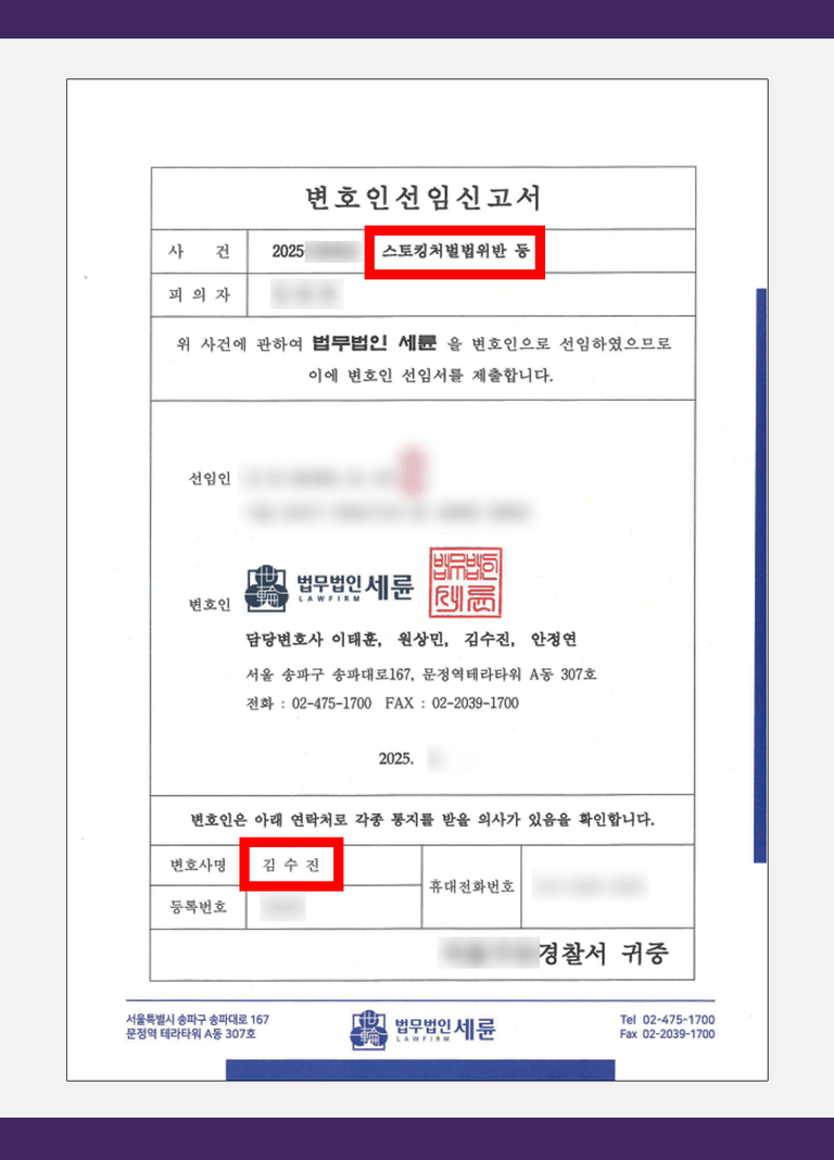 스토킹 고소와 관련하여 고민이 있으시다면 세륜과의 상담을 통해 현실적인 대응부터 점검해 보시기 바랍니다.