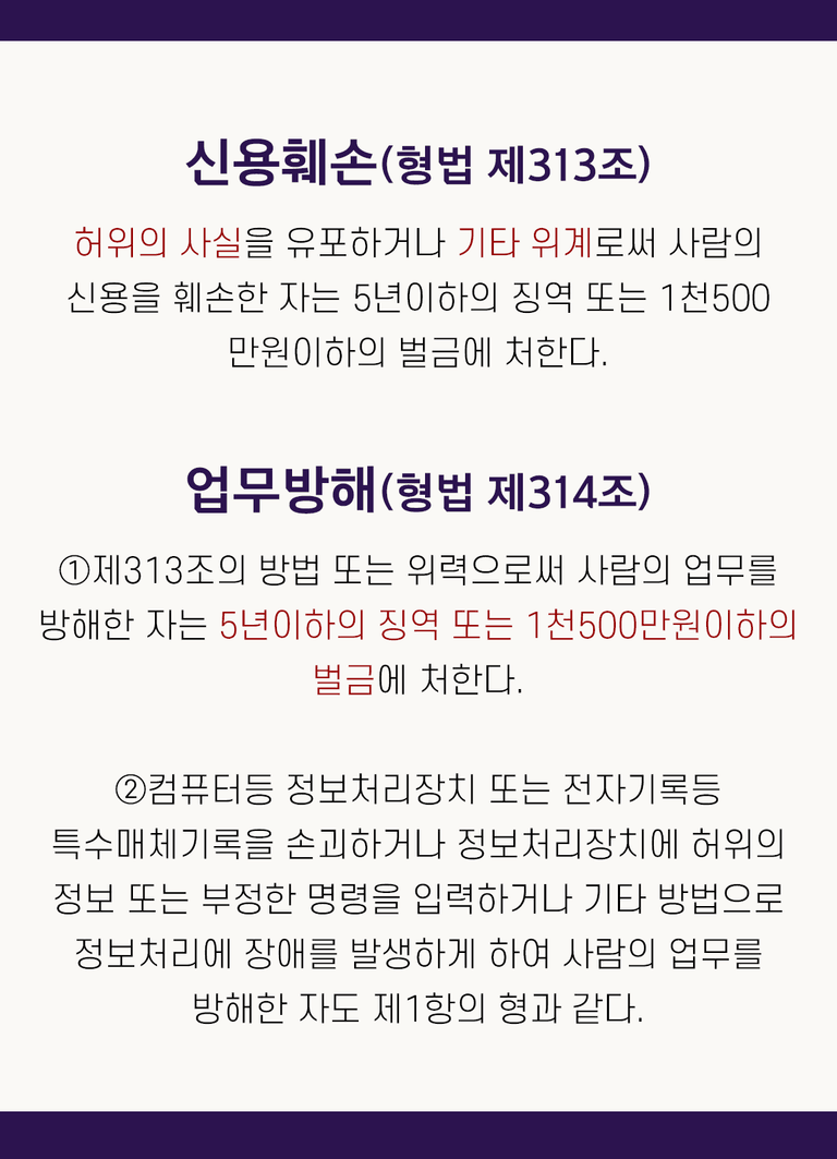 특히 경쟁사 직원이었기에 회사의 이미지를 깎아내리려는 악의적인 목적이 분명하다며 업무방해죄로 고소했습니다. 결국 A 씨는 벌금 등의 처벌을 받을 위기에 처하게 되었습니다.