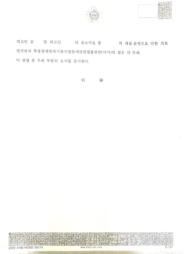 <의료법위반, 특경법위반(사기) 혐의로 수사의뢰되어 기소된 사건에서 무죄 선고된 사례>