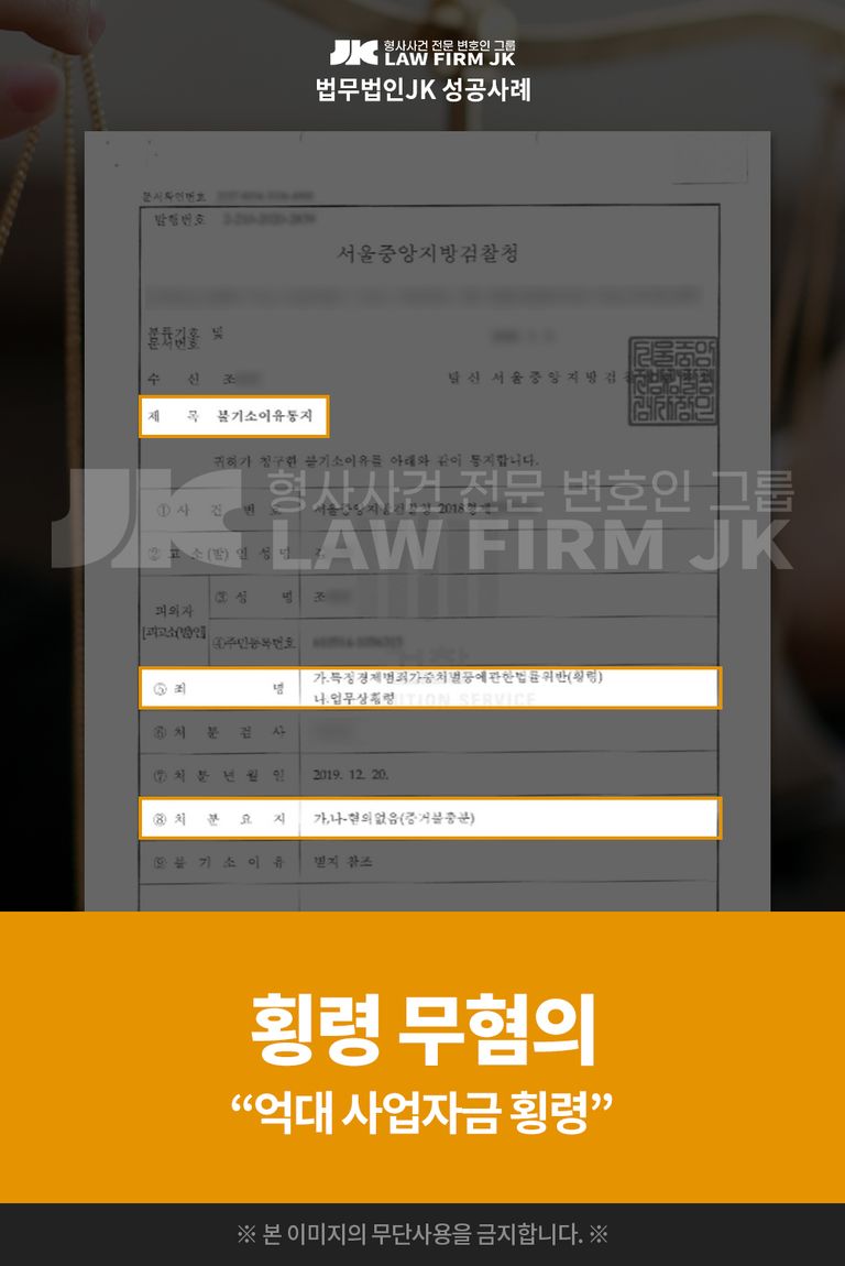 이번 사건은 회사 자금을 임의로 사용했다는 이유로 특정경제범죄가중처벌등에관한법률 위반, 횡령 혐의로 형사 입건되었으나 수사 단계에서 증거 부족으로 혐의 없음을 받은 사례입니다.