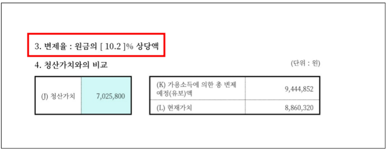 ↓ 과소비 생활비 채무에 대해 변제율 10.2%로 낮게 산정.