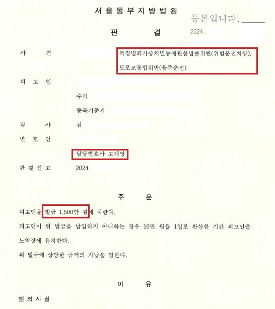 하지만 법원은 벌금 1,500만원의 판결을 선고하였고, 의뢰인도 일상으로 복귀할 수 있었습니다.