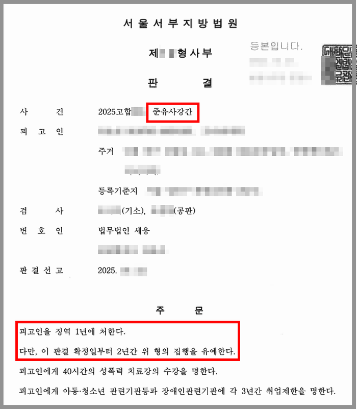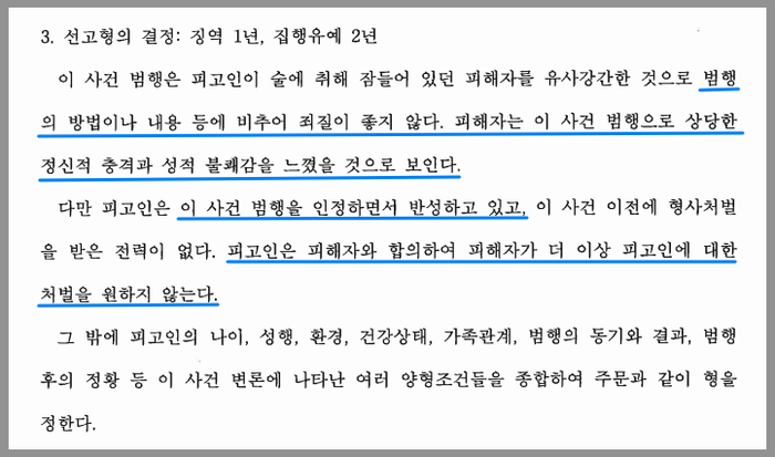 법원에서는 S의 죄질이 좋지 않고 피해자의 정신적 충격과 성적 불쾌감이 상당하였을 것이라는 점을 지적하면서도, 변호인이 주장한 여러 유리한 정상을 참작하여 S에게 징역형의 집행유예를 선고하였습니다.