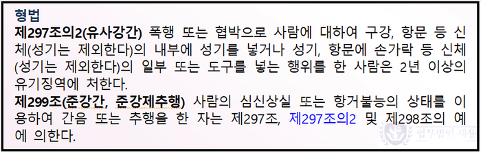 준유사강간죄는 술이나 약물에 취했거나 깊은 잠에 빠져서 정상적인 판단을 전혀 하지 못하거나 저항을 할 수 없는 상태에 있는 사람의 성기나 항문 등에 신체 일부나 도구 등을 넣는 경우에 성립하는 죄로, 법정형(법에 정해진 처벌의 종류와 범위)으로 벌금형이 없고 최대 15년의 징역형에 처해질 수 있는 무거운 범죄입니다.
