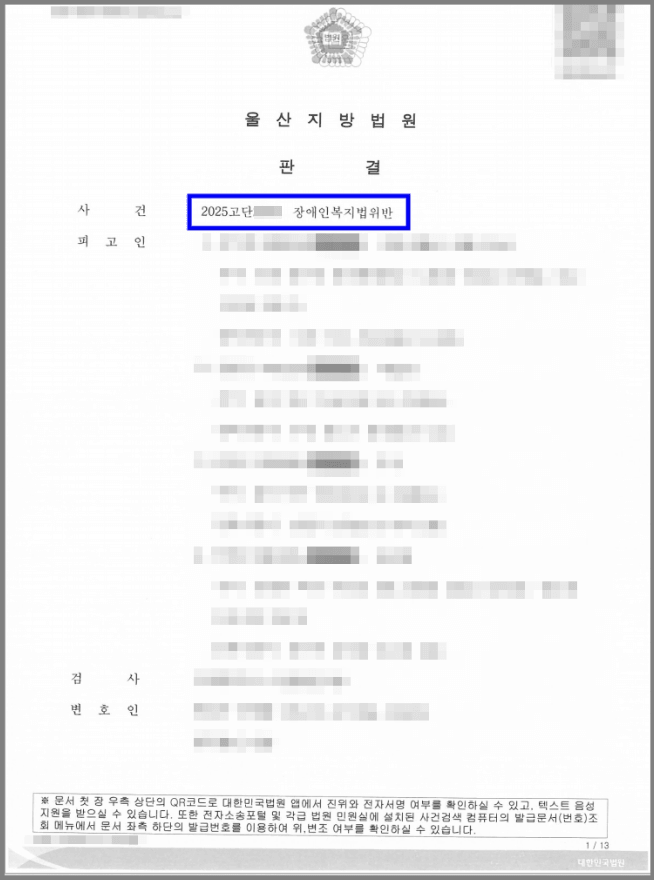 이번 사례는 장애인 거주시설 종사자가 장애인학대 혐의(장애인복지법 위반)로 기소되어