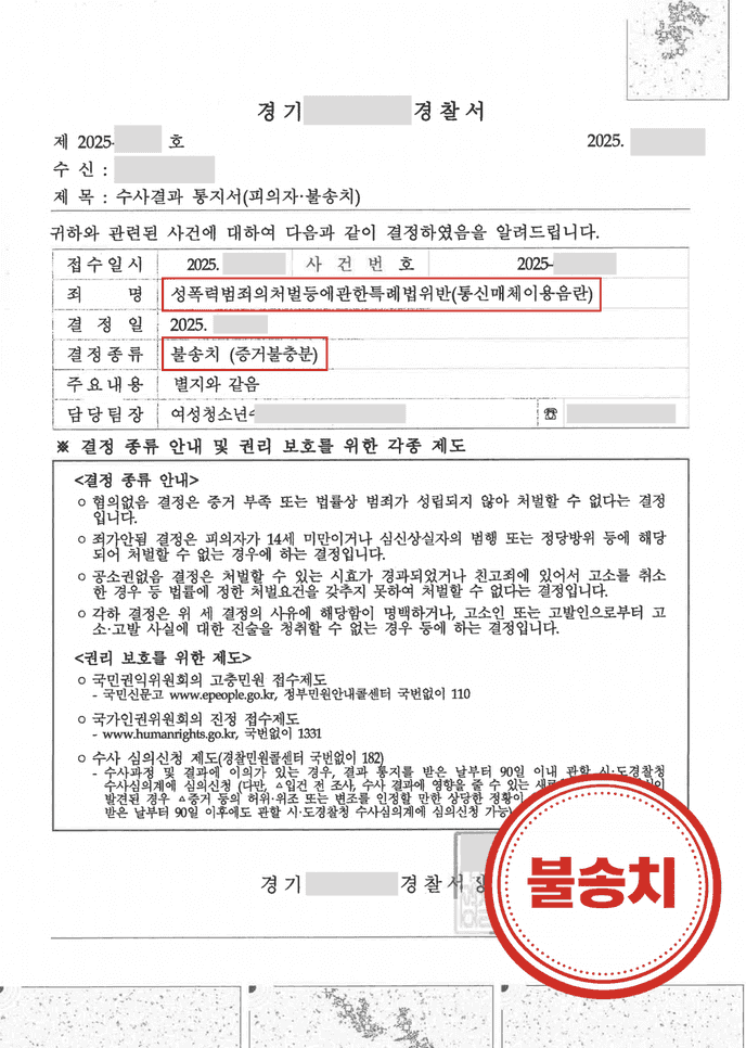 고소 사건에 대해 혐의없음(증거불충분) 처분을 내렸습니다.